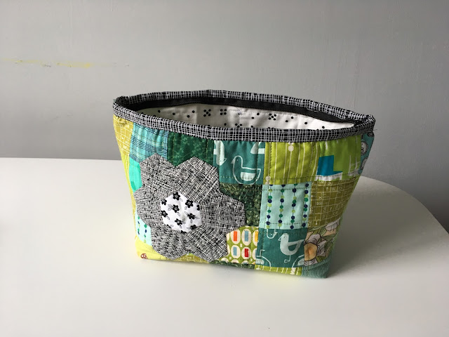 For the binding of this quilt I brought the backing forward to the front and machine stitched it down. I have never actually done this before and am quite happy with the result - I wanted to use the same fabric as backing for the binding so it made sense. I followed a tutorial on The Crafty Nomad