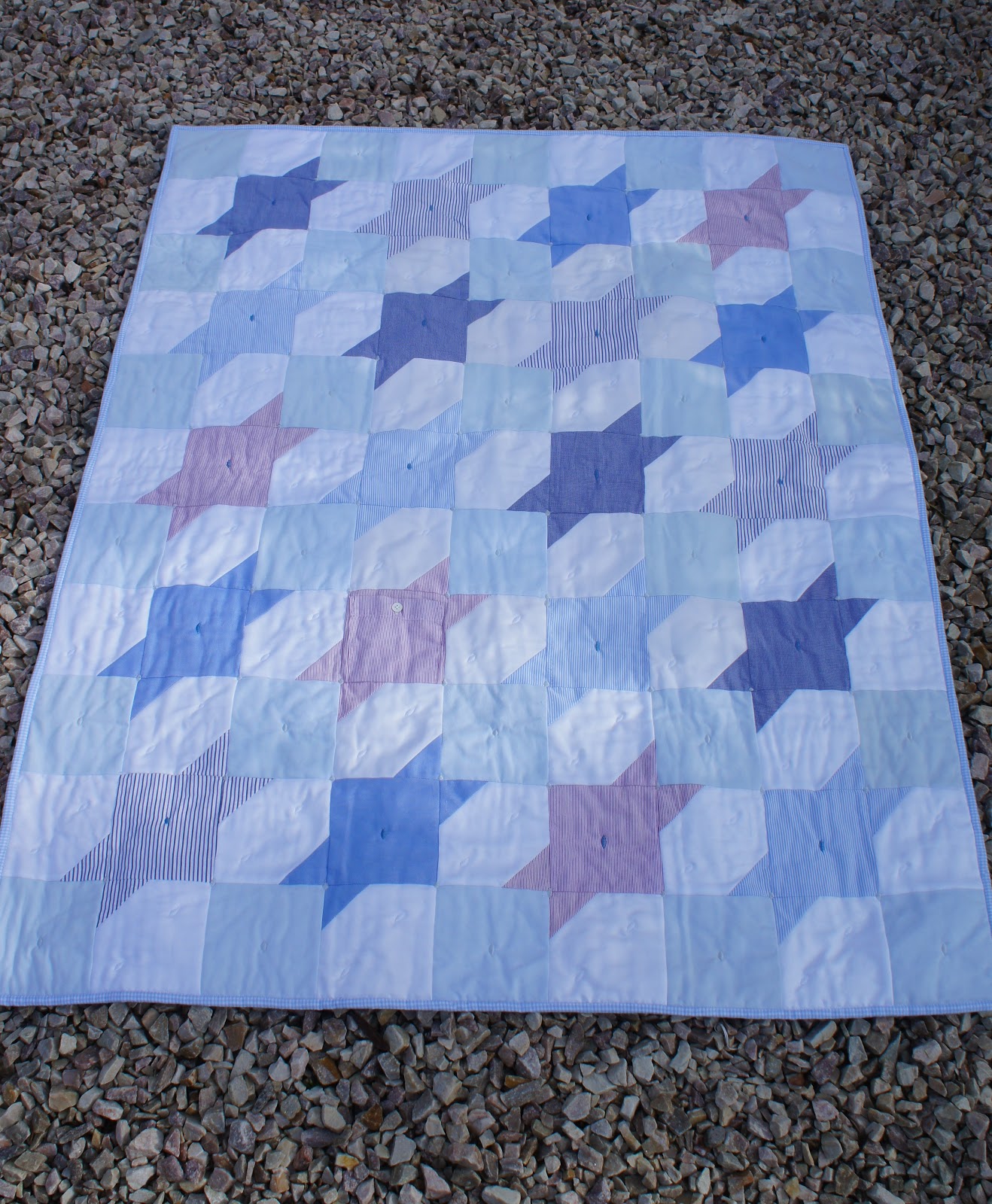 Once again, I went against the habit of a lifetime and stitched the binding down by machine. I have always enjoyed hand stitching a binding but lately find too much hand stitching sore on my hands so am now quite happy to use the machine. The finished quilt measures 72" square and I am so pleased with it, there are a lot of fabric memories in there.